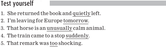 Does the word end in the suffix -ly? Is it an adjective? If it ends in -ly and it’s not an adjective, it’s probably an adverb (e.g. hopefully, happily, unusually).