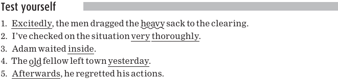 We’ve saved adverbs for last because they can be a bit tricky. Adverbs do lots of different things and can be in lots of different places in a sentence. In fact, the chances are, if you don’t know what else a word is, it’s probably an adverb.