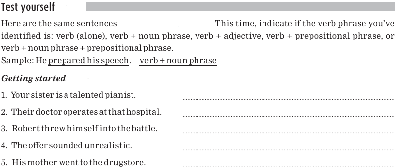 To sum up, we list below the kinds of verb phrases we’ve discussed: