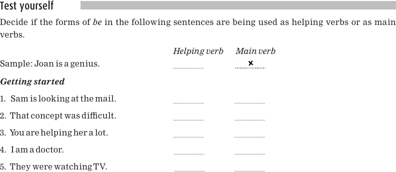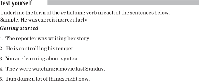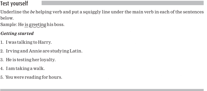 In each of the sentences below, the helping verb is a form of the verb be and is underlined.