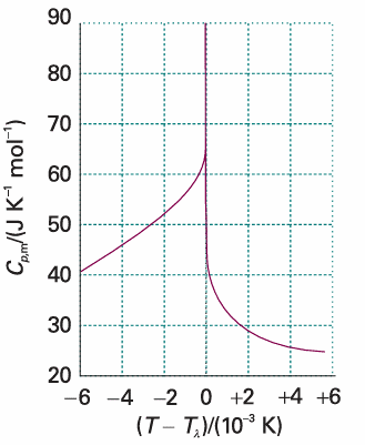 Fig. 4.17 The λ-curve for helium, where the heat capacity rises to infinity. The shape of this curve is the origin of the name λ transition.