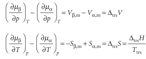 Many familiar phase transitions, like fusion and vaporization, are accompanied by changes of enthalpy and volume. These changes have implications for the slopes of the chemical potentials of the phases at either side of the phase transition. Thus, at the transition from a phase α to another phase β,