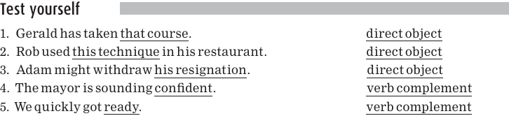 As we saw, a noun phrase can function as the subject of a sentence. A noun phrase can also have other functions. For example, a noun phrase maybe acted upon by the subject and follow the verb. These noun phrases are called direct objects. The direct objects in the sentences below are underlined: