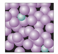 Fig. 5.16 In a dilute solution, the solvent molecules (the purple spheres) are in an environment that differs only slightly from that of the pure solvent. The solute particles, however, are in an environment totally unlike that of the pure solute.