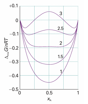 ∆mixG =nRT {xAlnxA + xBlnxB + βxAxB}