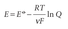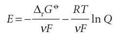 We can go on to relate the emf to the activities of the participants in the cell reaction. We know that the reaction Gibbs energy is related to the composition of the reaction mixture by eqn 7.11 (∆rG =∆rGo + RT ln Q); it follows, on division of both sides by −νF, that