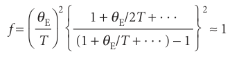 The Einstein temperature, θE= hν/k, is a way of expressing the frequency of oscillation of the atoms as a temperature: a high frequency corresponds to a high Einstein temperature. At high temperatures (when T>>θE) the exponentials in f can be expanded as 1+θE/T+· · · and higher terms ignored (see Comment8.2). The result is