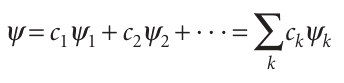 where the ck are numerical (possibly complex) coefficients and the ψk correspond to different momentum states. The functions ψk are said to form a complete set in the sense that any arbitrary function can be expressed as a linear combination of them. Then according to quantum mechanics: