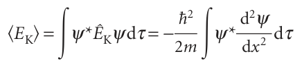 The mean kinetic energy of a particle in one dimension is the expectation value of the operator given in eqn 8.28. Therefore, we can write