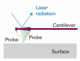 Fig. 9.18 In atomic force microscopy, a laser beam is used to monitor the tiny changes in the position of a probe as it is attracted to or repelled from atoms on a surface.