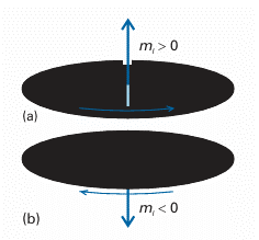 Positive values of ml correspond to rotation in a clockwise sense around the z-axis (as viewed in the direction of z, Fig. 9.29) and negative values of ml correspond to counter-clockwise rotation around z. It then follows from eqn 9.36 that the energy is limited to the values