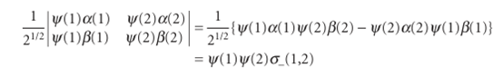 σ−(1,2) = (1/21/2) {α (1)β(2) − β(1)α(2)}