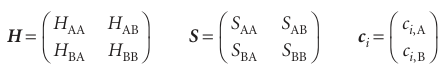 (HBA−EiSBA) c i, A+ (HBB − EiSBB) ci, B= 0