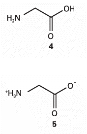 We already saw in Section 2.8 that computational chemistry is becoming the technique of choice for estimating standard enthalpies of formation of molecules with complex three-dimensional structures. The computational approach also makes it possible to gain insight into the effect of solvation on the enthalpy of formation without conducting experiments. A calculation performed in the absence of solvent molecules estimates the properties of the molecule of interest in the gas phase. Computational methods are available that allow for the inclusion of several solvent molecules around a solute molecule, thereby taking into account the effect of molecular interactions with the solvent on the enthalpy of formation of the solute. Again, the numerical results are only estimates and the primary purpose of the calculation is to predict whether interactions with the solvent increase or decrease the enthalpy of formation. As an example, consider the amino acid glycine, which can exist in a neutral (4) or zwitterionic (5) form, in which the amino group is protonated and the carboxyl group is deprotonated.