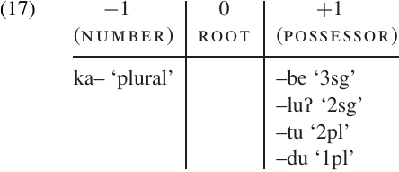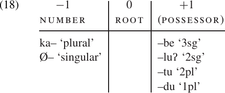d no word contains more than one possessor marker (this follows as a logical consequence of (a) and (b));
