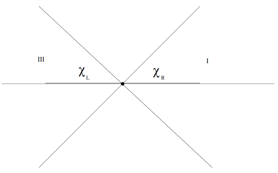 of space form a complete set of commuting operators. These fields may be decomposed into two subsets associated with regions I and III. we call the χR and χL respectively. Thus