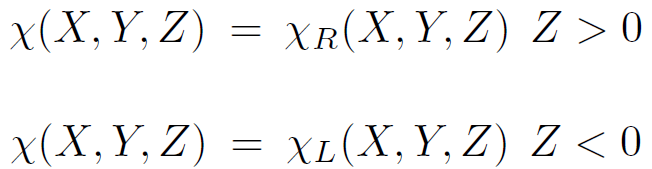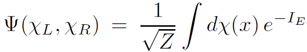 where the path integral is over all χ(x) with X0 > 0 and Z is an appropriate normalization factor .The field χ(x) is constrained to equal (χL, χR) on the surface X0 = 0. Finally the action IE is evaluated as an integral over the portion of Minkowski space with X0 > 0.