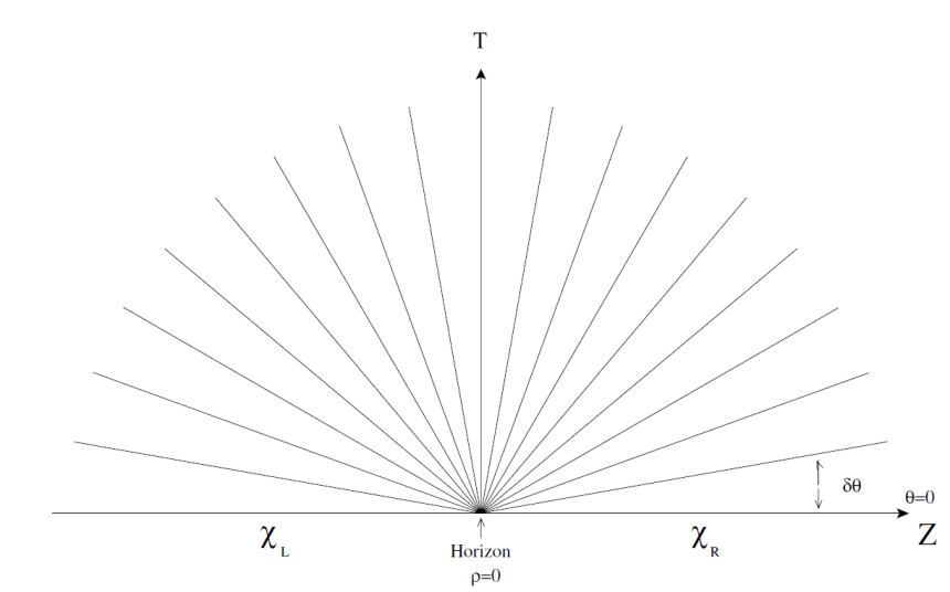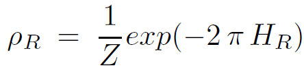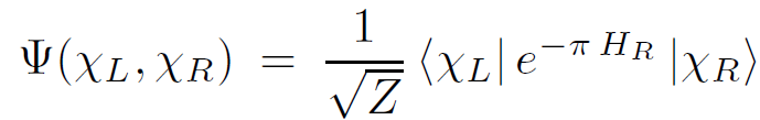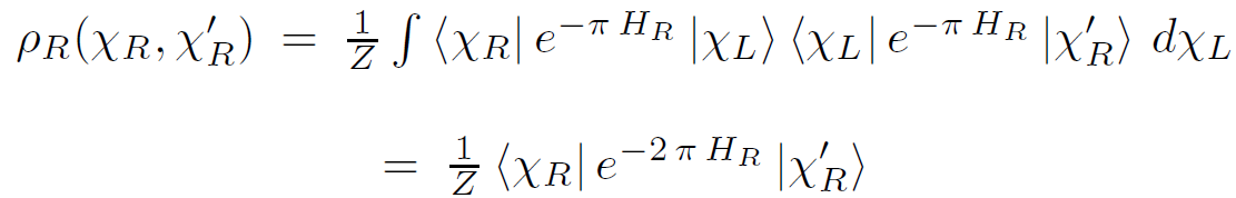 In other words, the path integral defining Ψ is computed as a transition matrix element between initial state χR and final state χL. The infinitesimal generator which pushes θ surfaces forward is just the Rindler Hamiltonian. Now we are prepared to compute the density matrix ρR. The density matrix ρR is given by