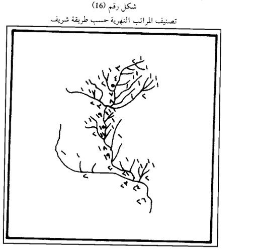 وضع العالم شريف هذا التصنيف سنة 1967 وهـو مختلف عن الطريقتين السابقتين وهو أيضاً من التصانيف البسيطة التي يمكن من خلالها معرفة عدد المجاري المائية لكل مرتبة بشكل دقيق جداً. وتتلخص الطريقة بجمع أرقام رتب المجاري في نقطة الالتقاء لكي يتمكن الباحث من الوصول إلى مرتبة النهر الأخيرة والتي تمثل المجرى الرئيسي للنهر عند الصب . ( انظر الشكل رقم 16 )