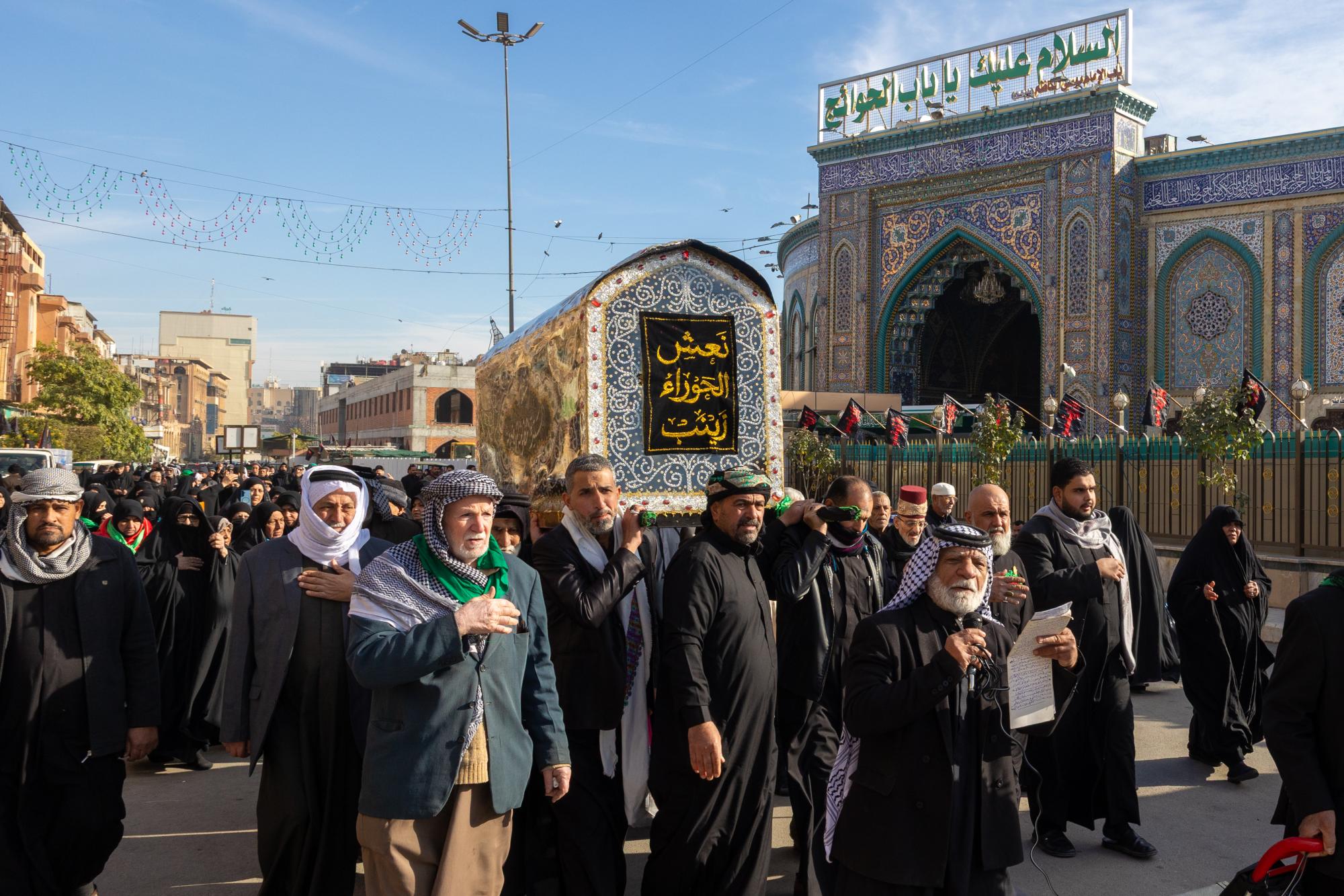 أهالي كربلاء يشيعون النعش الرمزي للسيدة زينب (عليها السلام) عند المرقدين الطاهرين