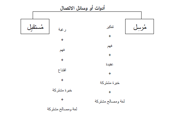 والرسم التالي ربما يوضح ويقرب الفكر أكثر لعملية الدور المشترك للمرسل والمستقبل والرسالة: