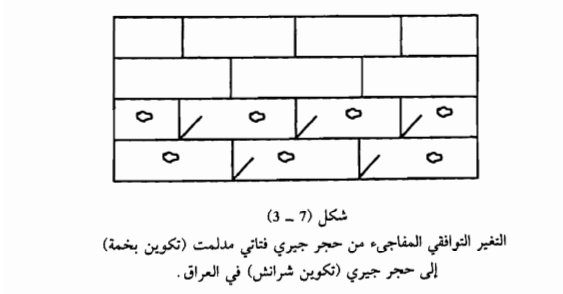 والحالة الثانية هي تغير طبقة من الحجر الجيري إلى دولومايت بعملية تسمى التدلمت (Dolomitization) فيؤدي ذلك إلى تغير طبقة الحجر الجيري أو جزء منها إلى دولومايت ويكون تعاقبهما مفاجئاً وبدون أي دليل على عدم التوافق.