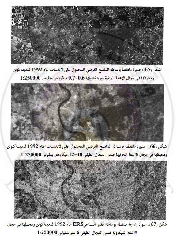 انظر الأشكال (65، 66 ، 67) التي تبين صوراً لماسح متعدد الأطياف بالمقارنة مع الصور الملتقطة من القمر الصناعي الأوروبي (ERS).