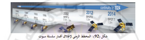 يبين الشكل (92) المخطط الزمني لإطلاق أقمار سبوت منذ بداية السلسلة.