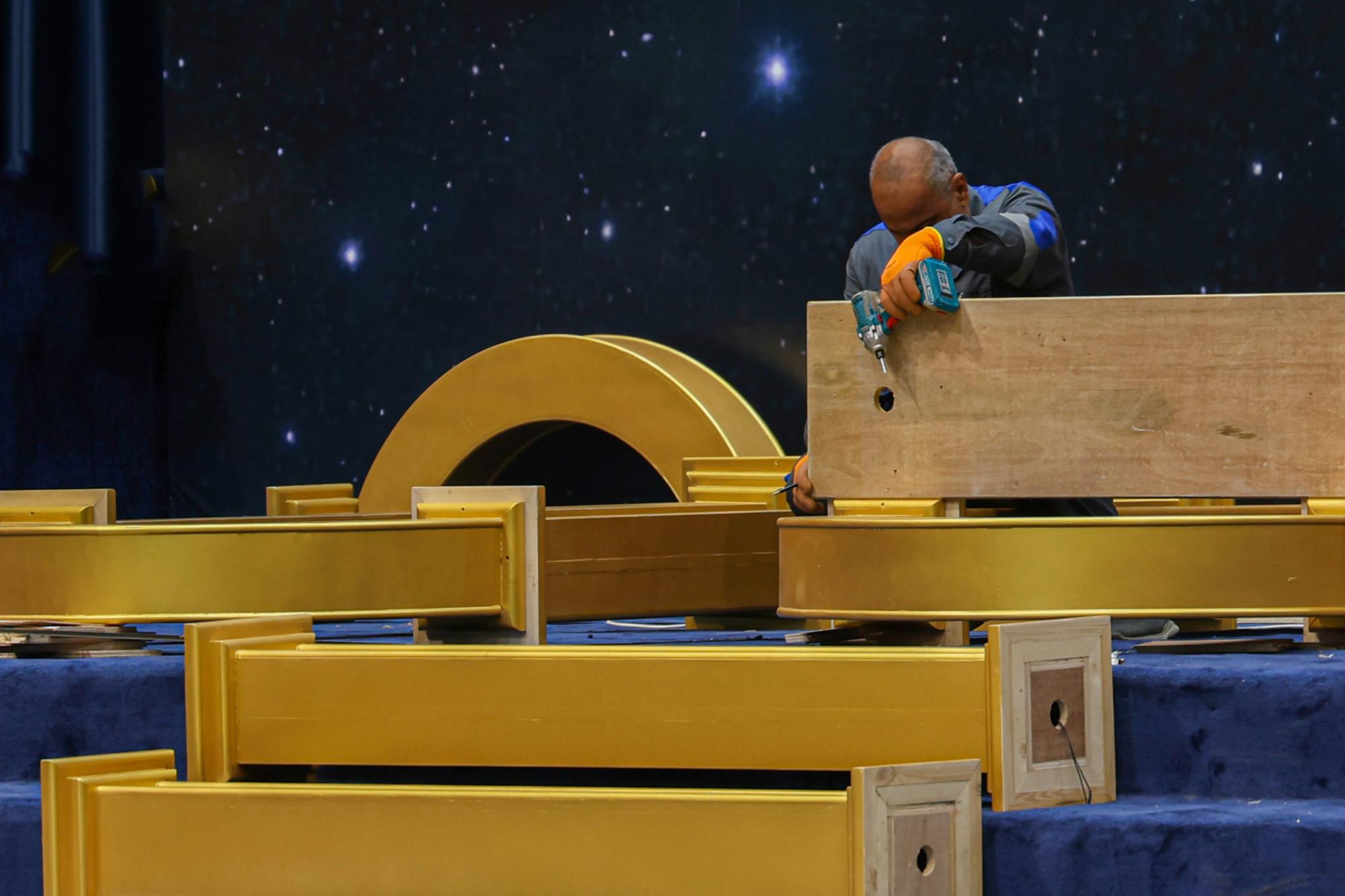 قسم الصناعات ينهي أعمال تجهيز منصات حفل سن التكليف الشرعي الثامن