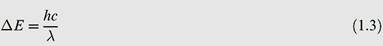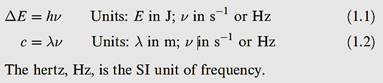 Since the frequency of radiation is related to the wavelength, ⱱ , by equation 1.2, in which c is the speed of light in a vacuum (c = 2.998 x108 ms-1), we can rewrite equation 1.1 in the form of equation 1.3 and relate the energy of radiation to its wavelength.