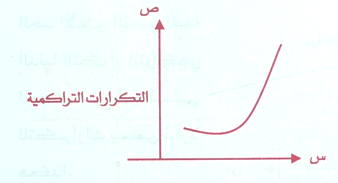 يمتاز هذا المنحني عن سواه من المنحنيات بأنه كلما ازدادت قيمة المتغير فيه تزداد التكرارات حتى يصل إلى نقطة معينة لا تعود بعدها قيمة المتغير إلى الانخفاض كما في الشكل :