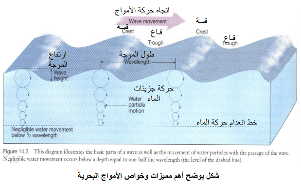 2ـ قاع الموجة Wave Trough وهو أدنى عمق تصل إليه الموجة.