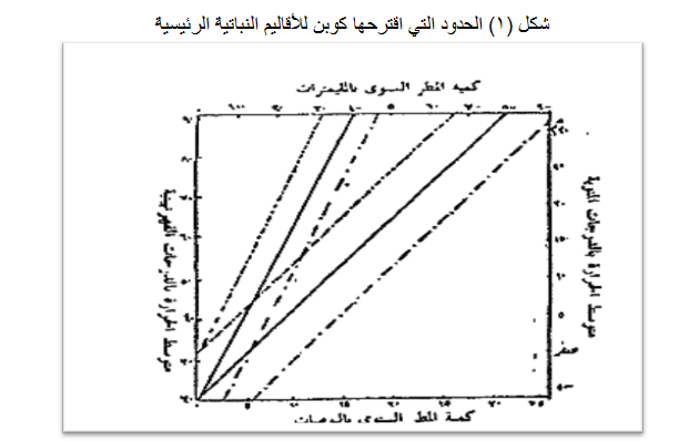 وقد اعتمد كوبن في تحديده لهذه العلاقة على تقسيم نباتي اقترحه أحد رواد علم النبات وهو دي كاندول A.De candolle سنة 1874. وفيه قسمت الحياة النباتية العامة على حسب احتياجاتها المناخية إلى خمسة أنواع كبرى هي:
