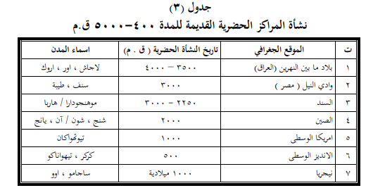 مرت المدن خلال تاريخها الطويل بعدة مراحل زمنية نجم عنها تغيرات في تركيبها الداخلي وطرازها العمراني واختلاف احجامها والى غير ذلك من المتغيرات ، فهناك مدن الحضارات القديمة المدن العراقية والمدن المصرية القديمة و مدن الهند والصين فضلا عن ذلك وجود المدن اليونانية والرومانية ومدن امريكا الوسطى والجنوبية ، وكذلك مدن الاسلامية القديمة ومدن اخرى شيدت قبل الثورة الصناعية واخرى بعدها في اوربا ومن ثم امتدت إلى جميع بلدان العالم ، وبهذا الخصوص فقد اشارات الدراسات التي اهتمت بمدن الحضارات القديمة الى وجود اعداد كبيرة من المدن القديمة وبالتالي سيقتصر الحديث هنا على مدن الحضارات القديمة في العراق ومصر وعلى النحو الاتي: