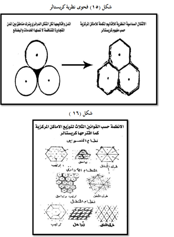 9ـ اشار كريستالر ان يكون للمكان المركزي الشكل السداسي نظريا بدلا من الشكل الدائري ، وذلك ان الشكل السداسي لا يترك منطقة من الاقليم لا تصلها البضائع والخدمات المركزية.