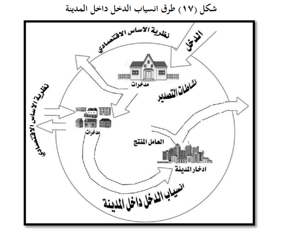 2ـ بواسطة الاساس الاقتصادي يمكن التعرف على النشاطات الاقتصادية الاساسية للمدينة والتي تعمل على تطوير المدينة لكونها تجلب دخلا من خارجها لان انسياب الدخل إلى المدينة يتأتى على شكل اموال مقابل قيمة تصدير البضائع والخدمات إلى خارج حدود المدينة وبالتالي فان جزءاً من الدخل يعطى كأجور إلى العمال والعمال ينفقون اغلب اموالهم داخل المدينة وذلك لشراء البضائع والخدمات وهو تمثل المظهر الاقتصادي لحياة سكان المدينة.
