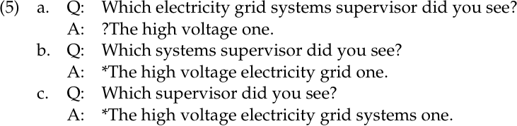 There is evidence that high voltage electricity grid systems supervisor is a single noun. First, its distribution matches that of any other noun, so we can insert it into phrases like [a good N] or [N for hire]. Second, high voltage electricity grid systems supervisor behaves as a single unit for the purposes of wh-movement. Question–answer pairs that break it up are at the very least awkward. We related this characteristic of words to the notion of lexical integrity: