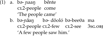 Here, in contrast to (2b), ‘elephant’ does not bear a gender–number suffix, and object agreement morphology fails to appear on the verb.