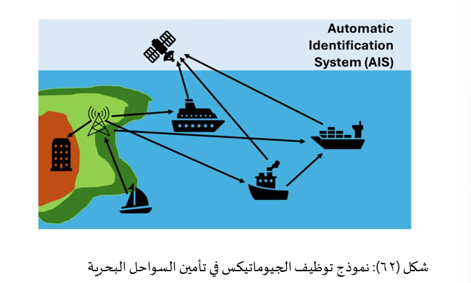 يشمل مراقبة الحدود باستخدام الجيوماتكس توظيف الطائرات المسيرة أو الحساسات لتغطية مساحات واسعة ونائية ودمج تلك البيانات في GIS لتوجيه الدوريات. أما الوعي بالمجال البحري فيستخدم بيانات) AIS نظام التعريف التلقائي) من السفن عبر الأقمار الصناعية إلى جانب صور الرادار الفضائي في GIS لاكتشاف الصيد غير القانوني أو التهريب أستراليا تستخدم مثل هذه الأنظمة لمراقبة إقليمها البحري الضخم.