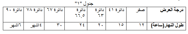 3- اختلاف طول الليل والنهار في العروض المختلفة وفي الفصول المختلفة.