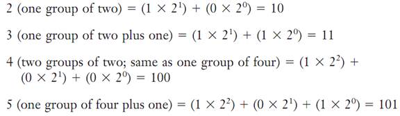 tric current has two states—on and off. A computer is programmed to compute with groups of two using the binary number system.