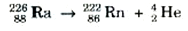 ومن الواضح أن قيم A متساوية على الجانبين، 226 = 222+4. وعلاوة على ذلك، ولأن الشحنة أيضاً لابد من بقائها، فإن مجموع قيم Z لابد أن تكون متساوية على الجانبين. وفي التفاعل الراهن فإن 86 + 2 = 88.