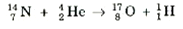 وبعبارة أخرى، فإن جسيم α دخل إلى نواة 14N، التي تفتتت بإطلاق بروتون. أي أن نواة النيتروجين الأصلية قد تحولت إلى نواة اكسجين.