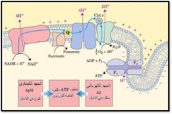 شكل 1 : انتاج الطاقة عبر الأغشية الخلوية بالفسفرة التأكسدية