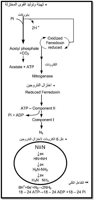 3- اما الاحياء التي تثبت بشكل تعايش مثل بكتريا Rhizobium فاتخذت طريقة تكوين العقد الجذرية التي تكون غنية بمركب الهيموغلوبين البقولي Leghaemoglobulin الذي يمنع وصول الاوكسجين الى النظام .