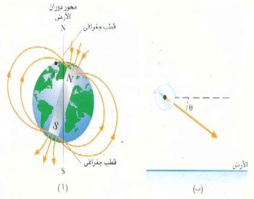 وكما هو موضح بالشكل (1) فإن المجال المغناطيسي للأرض يكون موازياً تقريباً لسطح الأرض في المناطق الاستوائية ويكون عمودياً تقريباً على سطح الأرض بالقرب من القطبين. وعلى وجه العموم ، فإن إبرة البوصلة المعلقة على محور أفقي عند النقطة P في نصف الكرة الشمالي سوف تشير بزاوية مقدارها θ أسفل الخط الأفقي. وتسمى هذه الزاوية بزاوية ميل المجال المغناطيسي للأرض.