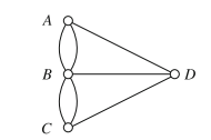 Sample Problem 1.2 The islands A, B, C, D are joined by seven bridges—two joining A to B, two from C to D, and one each joining the pairs AC, AD and BD.