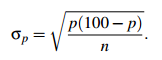 Assume we are discussing a proportion (such as “proportion voting for a candidate” or “proportion voting yes”) and estimating it by sampling. We shall write p for the population proportion, and ˆp (“p-hat”) for the corresponding sample proportion. It will be convenient always to write these as percentages.
