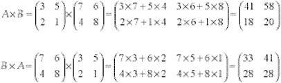 There are many parallels to be drawn between matrix algebra and ordinary algebra. The most celebrated difference occurs in the multiplication of matrices. If we multiply matrix A with matrix B and then try it the other way round: