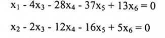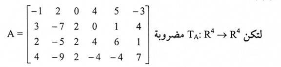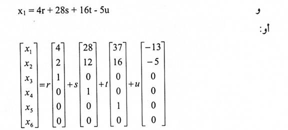 إذن المتجهات الأربعة هي أساس فضاء الحل. لذا فإن rank (A) = 2  و  null(A) = 4 وبموجب المبرهنة (6-2-3) فإن rank (TA) = 2  و  null (TA) = 4